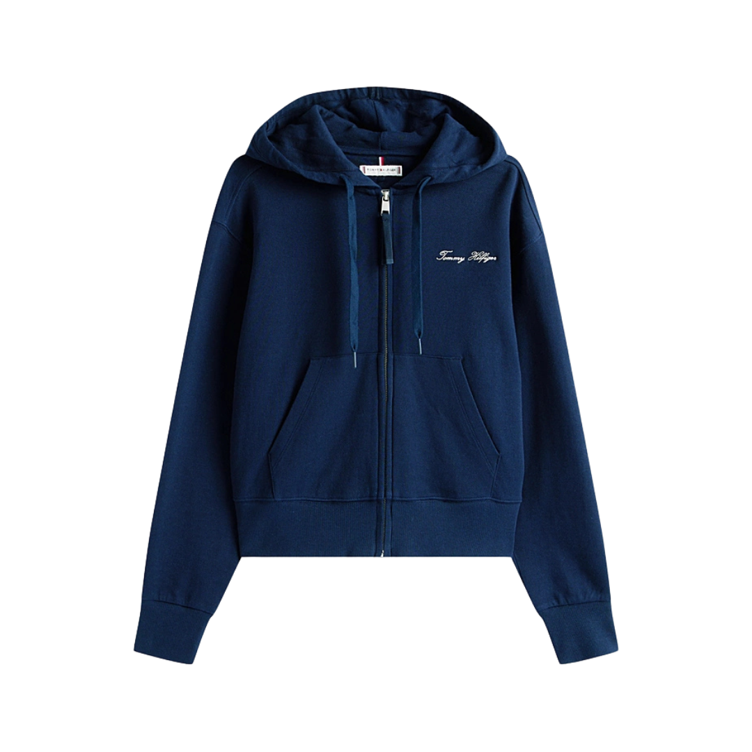 Il collo con cappuccio regolabile, la chiusura full zip e la tasca a marsupio divisa la rendono un capo pratico, ideale per il tempo libero, i weekend fuori porta o le passeggiate sul lungomare. I polsini e il fondo a coste assicurano una vestibilità morbida ma definita, mentre i dettagli iconici come il logo Tommy Hilfiger ricamato in corsivo sul petto e la bandierina sulla manica raccontano un’eleganza sportiva riconoscibile.