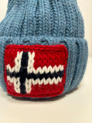 Realizzato in calda maglia a costine, il berretto con pompon in misto lana Semiury è rifinito con l’iconica bandiera norvegese sul davanti. Color grigio scuro.
