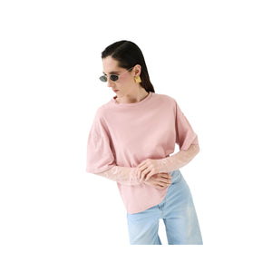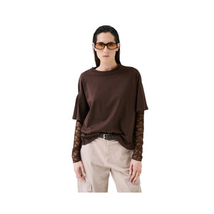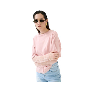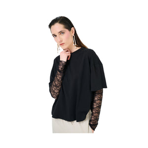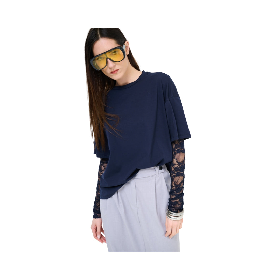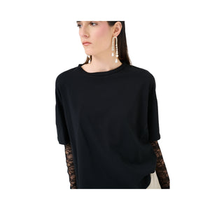 T-shirt oversize con spalla calata e fondo manica in pizzo tono su tono.