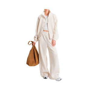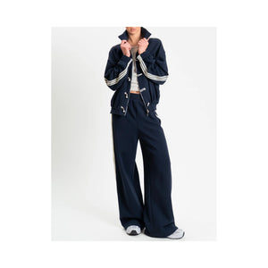 La felpa con strisce laterali unisce comfort assoluto a dettagli che catturano l’attenzione.