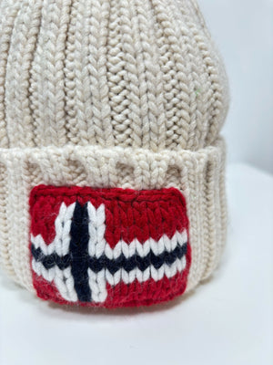 Realizzato in calda maglia a costine, il berretto con pompon in misto lana Semiury è rifinito con l’iconica bandiera norvegese sul davanti. Color nero.