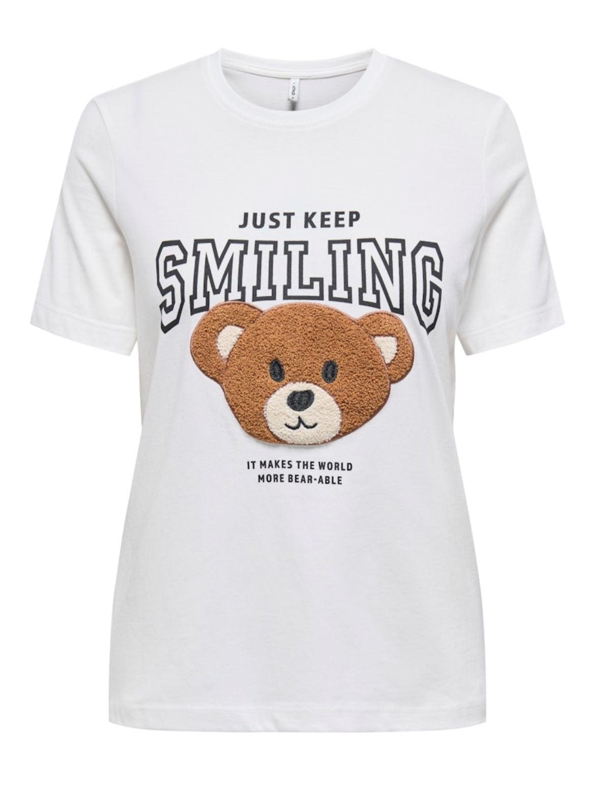 Il dettaglio che fa la differenza? L’applicazione teddy bear, che aggiunge un tocco giocoso e distintivo al look, senza rinunciare a eleganza e originalità. Una proposta fresca e contemporanea che si abbina facilmente a jeans, shorts o gonne, diventando la base ideale per ogni outfit da tempo libero.