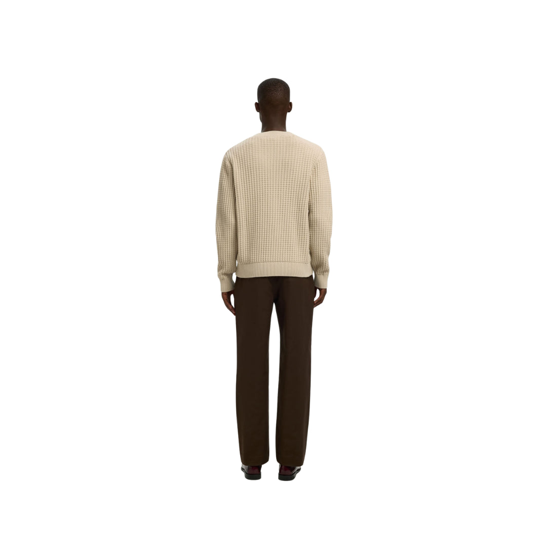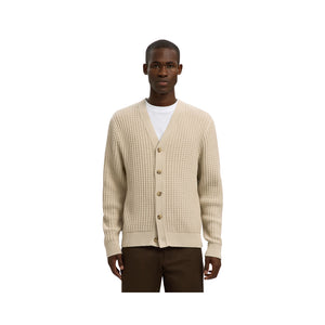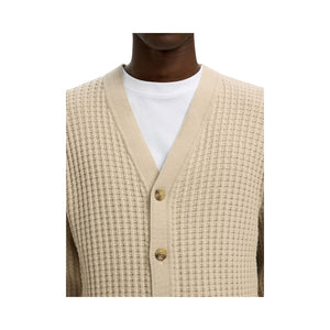 Questo cardigan a maniche lunghe con scollo a V combina semplicità e raffinatezza in un capo versatile. La chiusura frontale con bottoni aggiunge un tocco classico, mentre la lavorazione a nido d’ape dona profondità e carattere al tessuto. Realizzato al 100% in cotone, è morbido, traspirante e confortevole sulla pelle. La vestibilità regolare lo rende ideale da indossare sia aperto su una t-shirt per un look casual, sia abbottonato per un tocco più curato e raffinato — perfetto per ogni occasione quotidiana.
