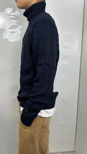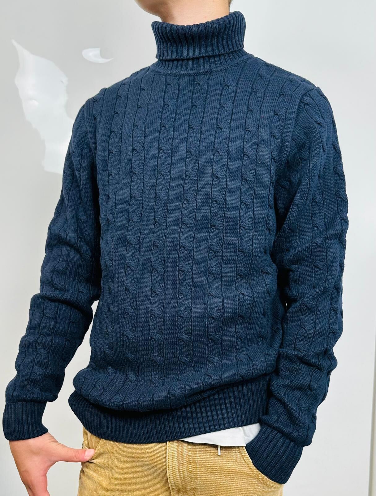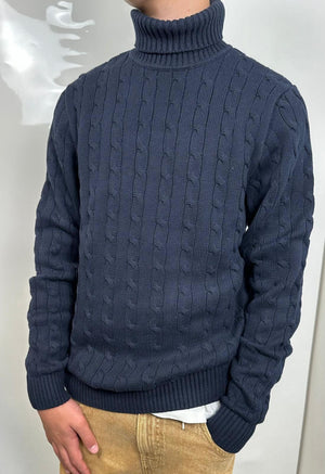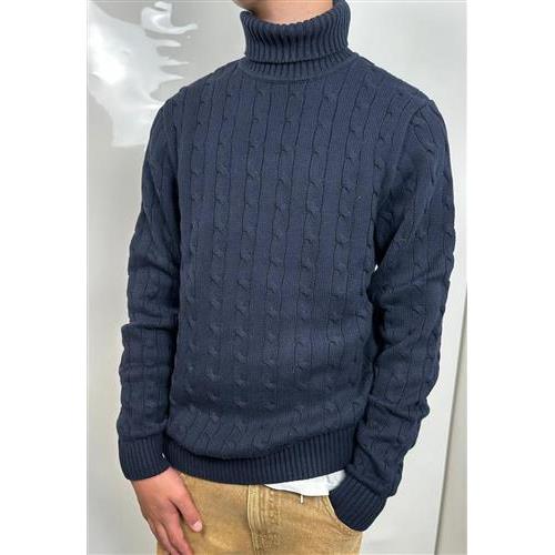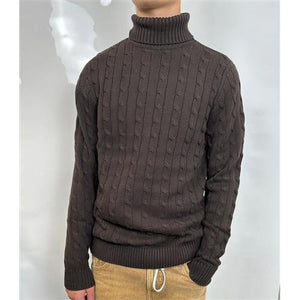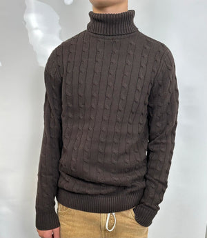 Pullover a collo alto SELECTED Homme in cotone 100%. Color cioccolato, lavorazione intrecciata.