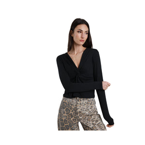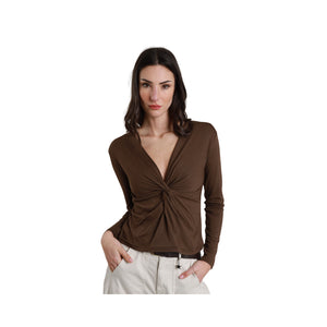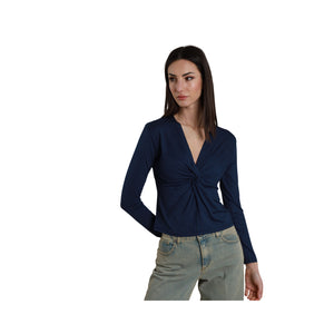 Maglia A Maniche Lunghe Stretch Con Nodo Sul Fronte e Scollo A V, Slim Fit.