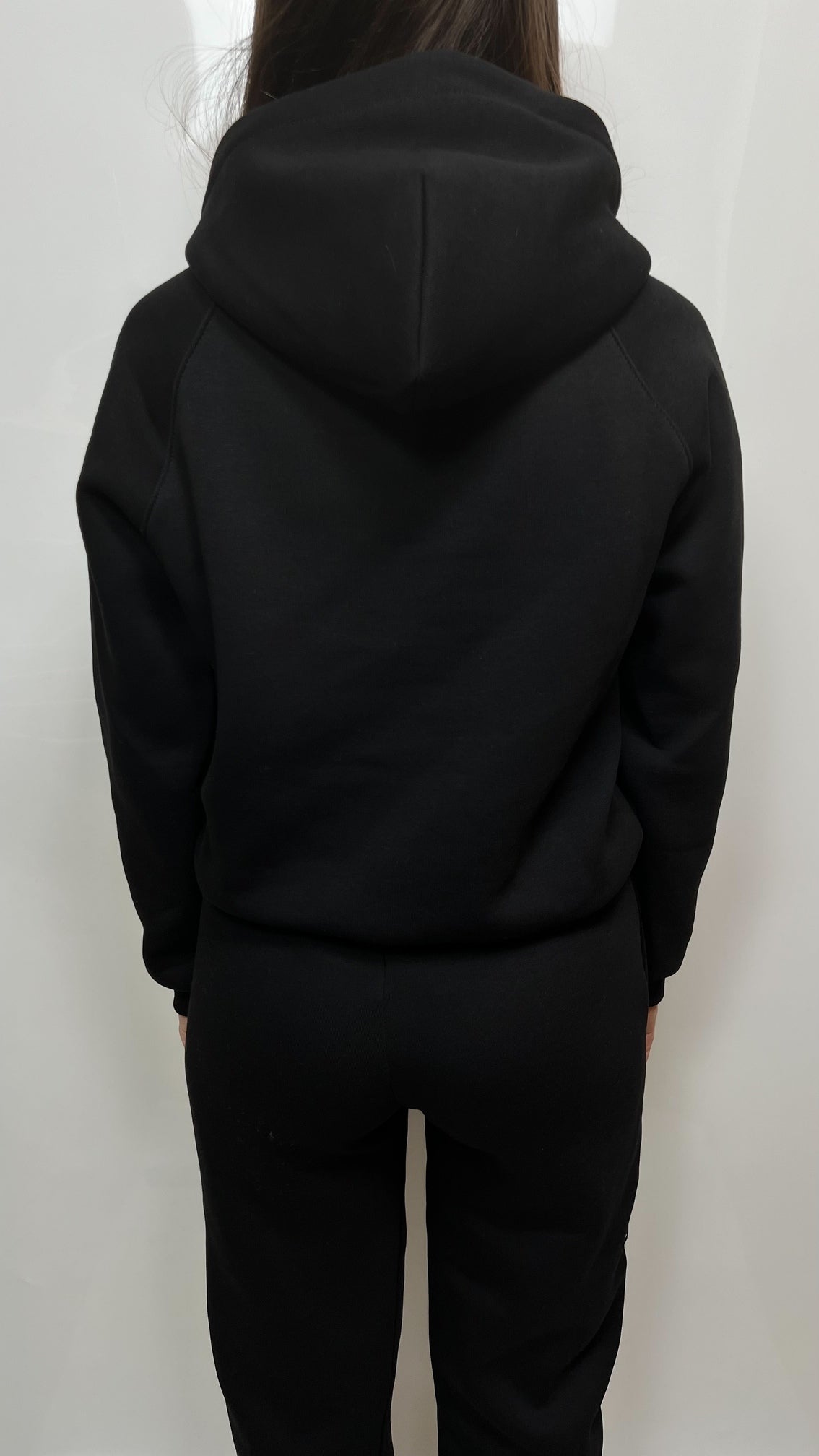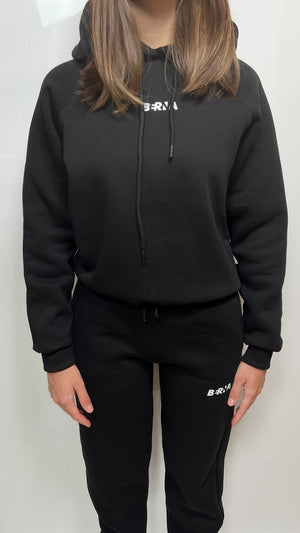Felpa con cappuccio in contone nera BERNA. Interno felpato, versatile e comoda, ideale pe la stagione autunno inverno.