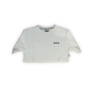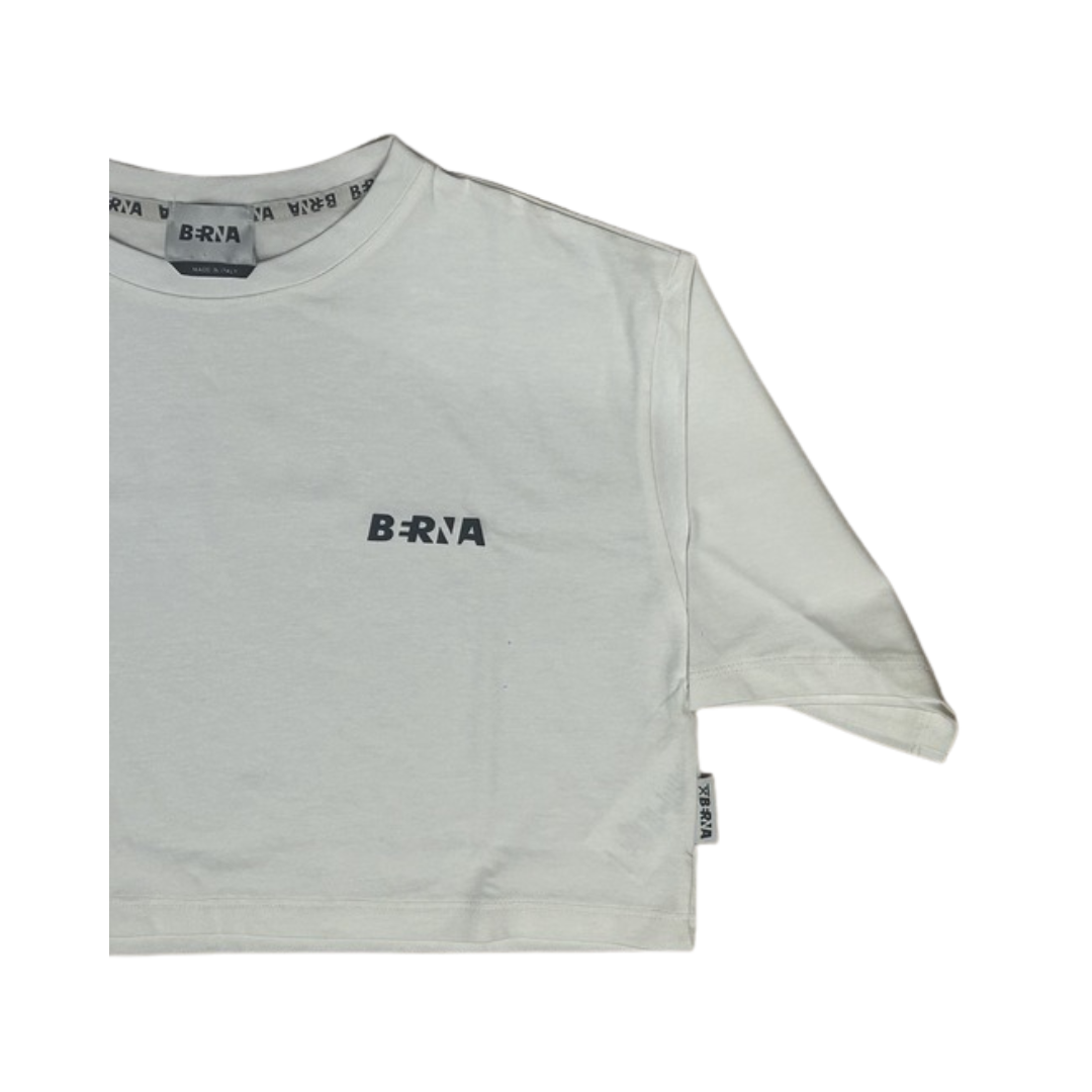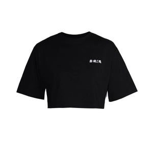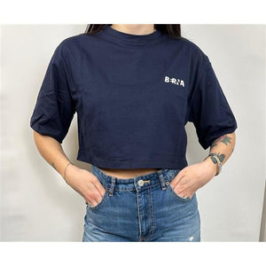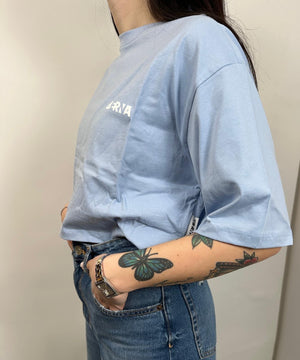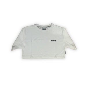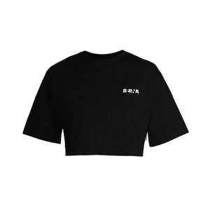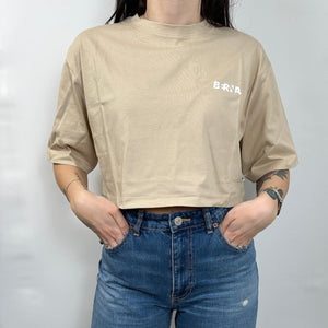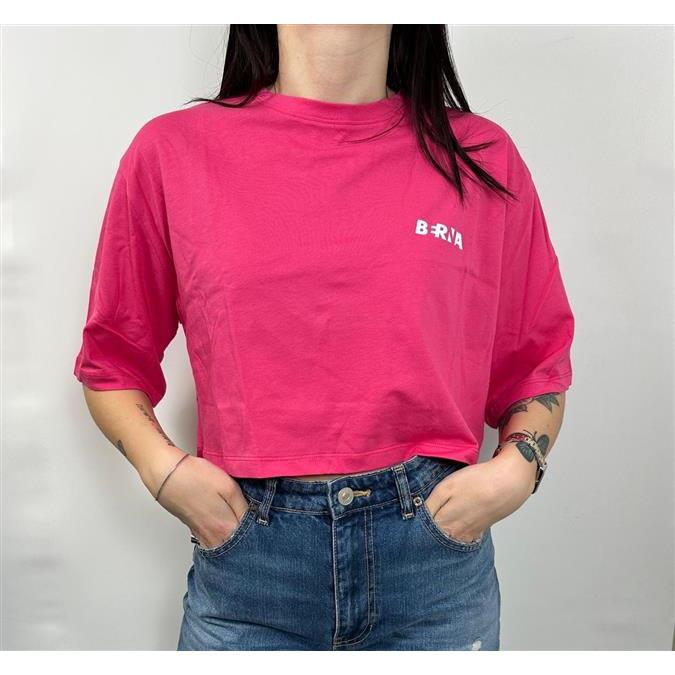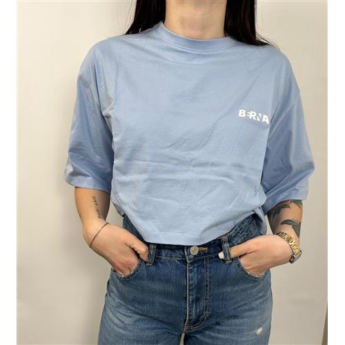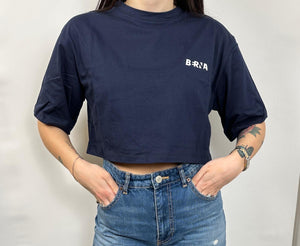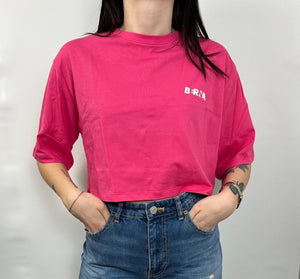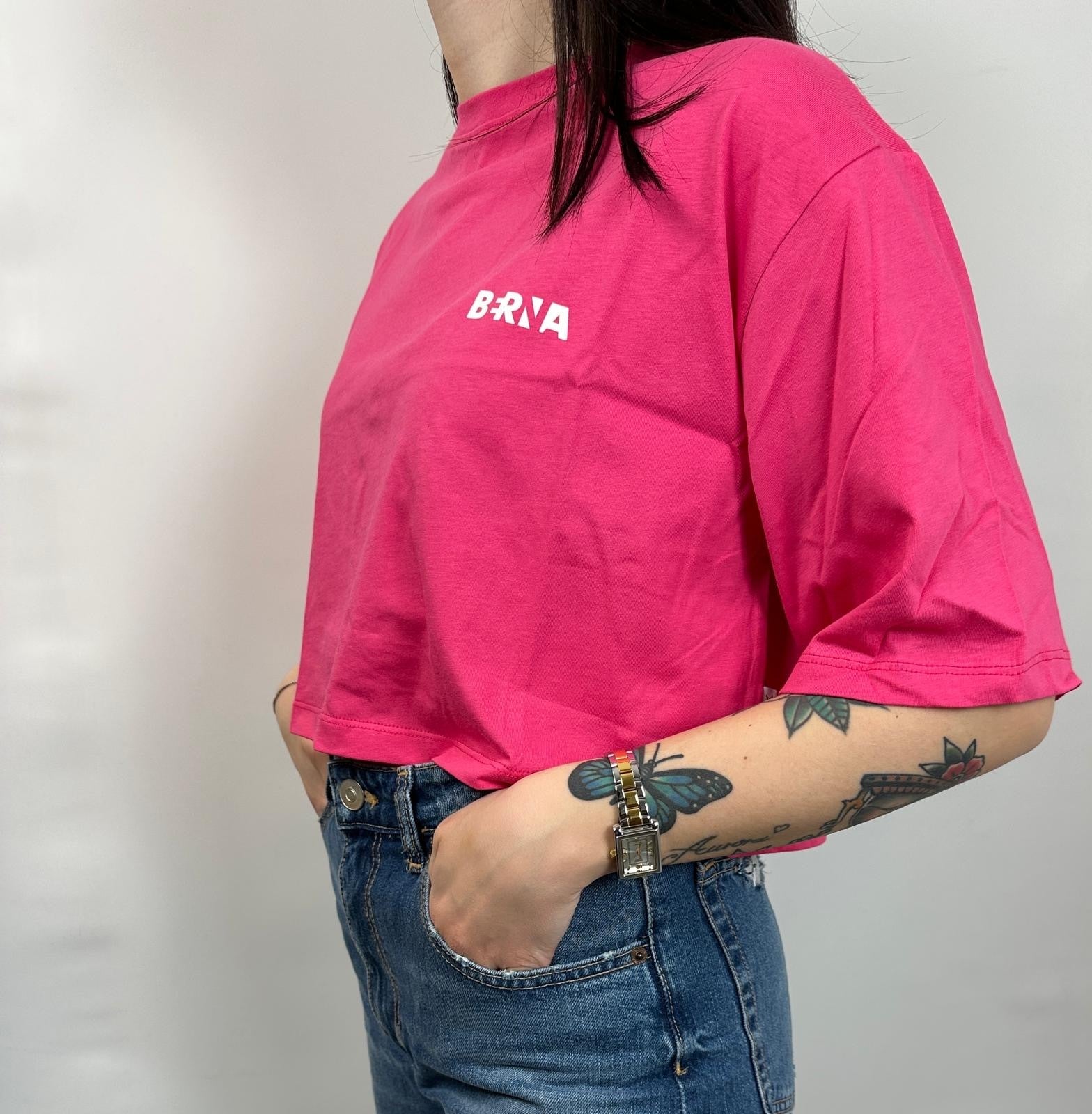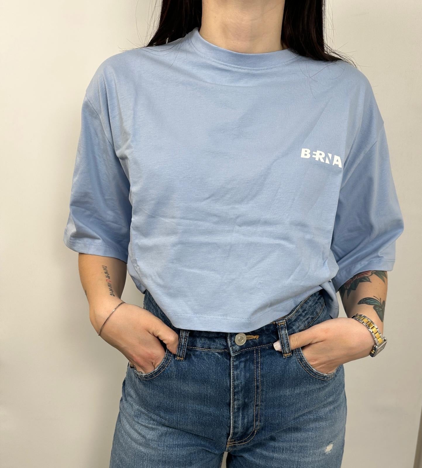 T-shirt cropped basica in puro cotone con vestibilità over con stampa logo lato cuore.