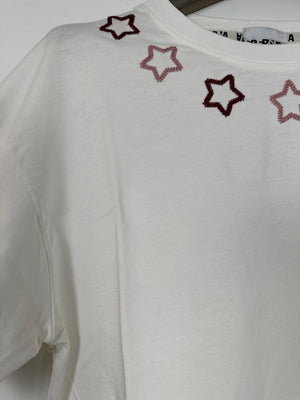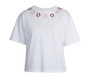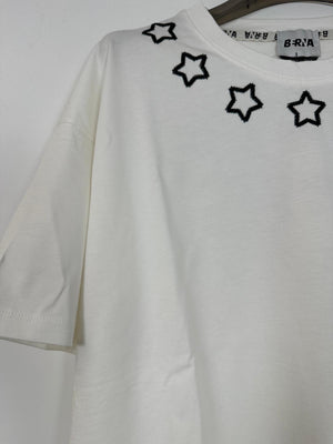 T-shirt in puro cotone con ricamo stelle nere su girocollo.