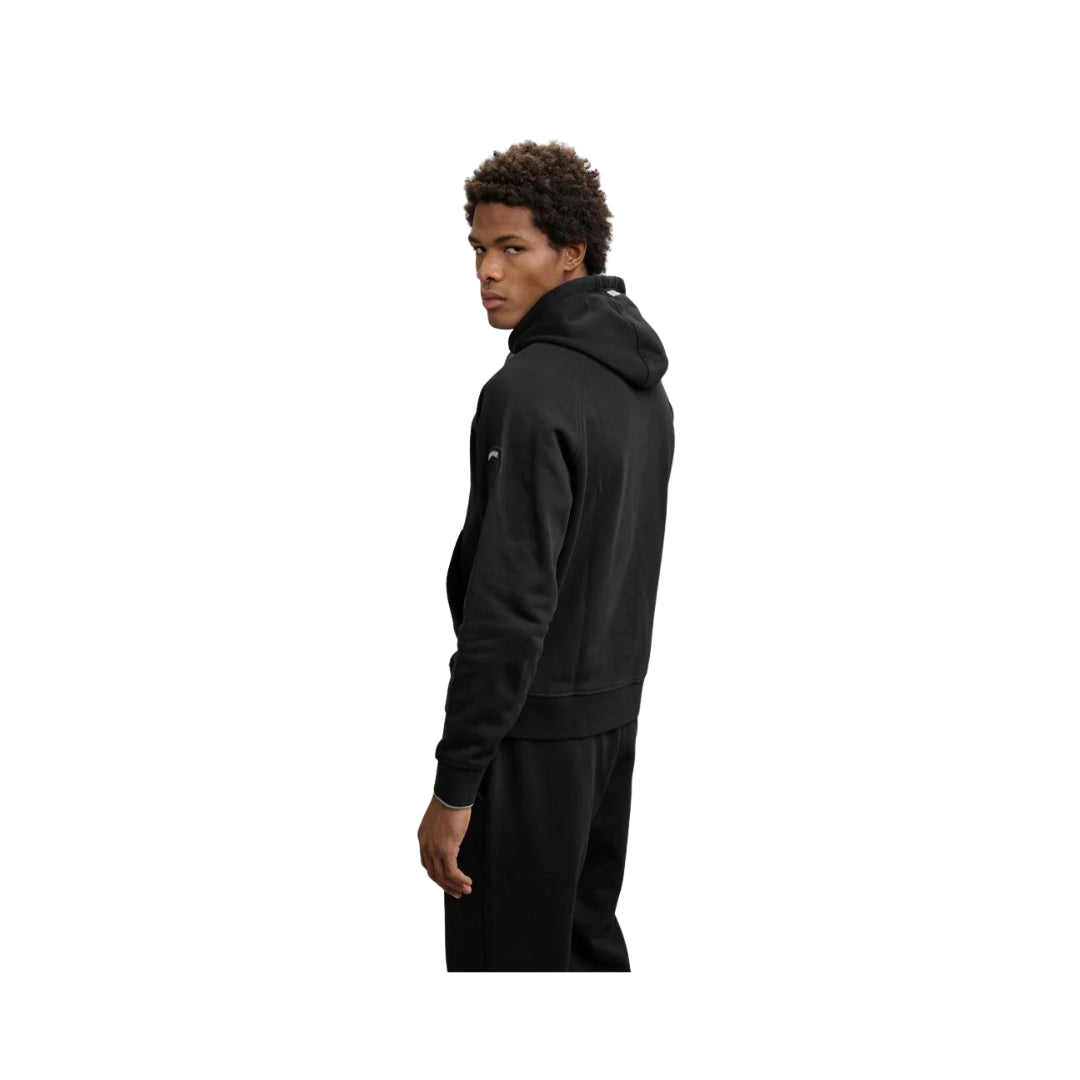 Felpa chiusa davanti realizzata in morbido cotone, pensata per un comfort quotidiano e uno stile casual contemporaneo. Il cappuccio fisso presenta una coulisse in contrasto colore e un inserto in fettuccia coordinato all’interno, per un tocco di personalità in più. Il design è completato da una pratica tasca a marsupio e da polsini e fondo in costina rigata che assicurano una vestibilità perfetta. Sul davanti spicca il decoro con logo in velluto, mentre la patch con logo aggiunge un dettaglio distintivo e moderno. Ideale per il tempo libero e le giornate rilassate, è un capo versatile che unisce comfort e stile.