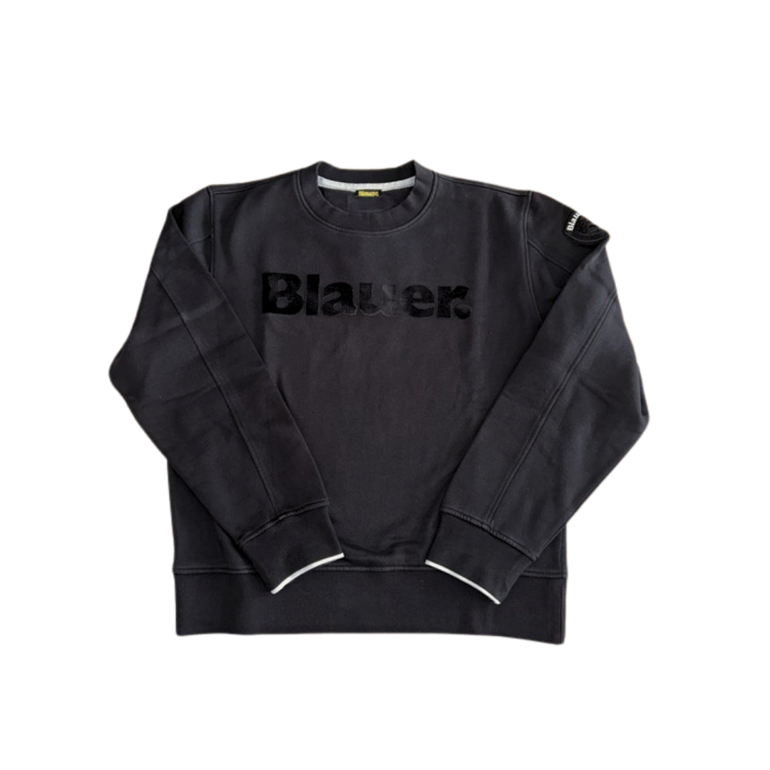 Felpa girocollo Blauer realizzata in morbido cotone, perfetta per un look casual e confortevole. Il design minimal è valorizzato dalla stampa del logo Blauer sul petto, che dona un tocco distintivo e moderno. Le maniche lunghe e la vestibilità regolare assicurano comfort quotidiano e libertà di movimento, mentre le finiture in costina su collo, polsini e fondo completano il capo con un tocco sportivo. Ideale da abbinare a jeans o pantaloni jogger per un outfit rilassato ma curato in ogni dettaglio.