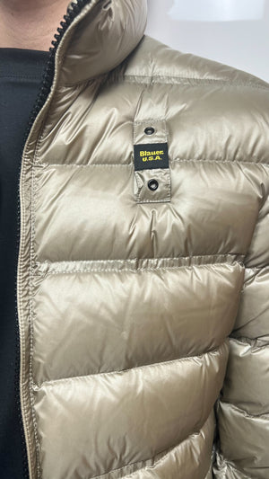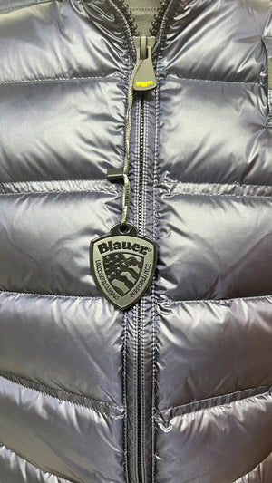 Giubbino BLAUER tortora trapuntato a righe orizzontali singole e doppie intervallate. Capo iconico Blauer con imbottitura naturale in piuma, calda e non ingombrante.