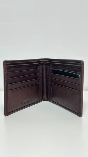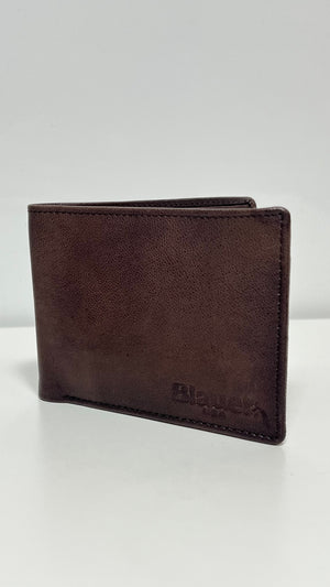 Portafoglio BLAUER marrone vera pelle morbida con interno in tessuto camouflage stone washed. Spazio per carte di credito e porta monete.