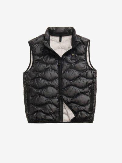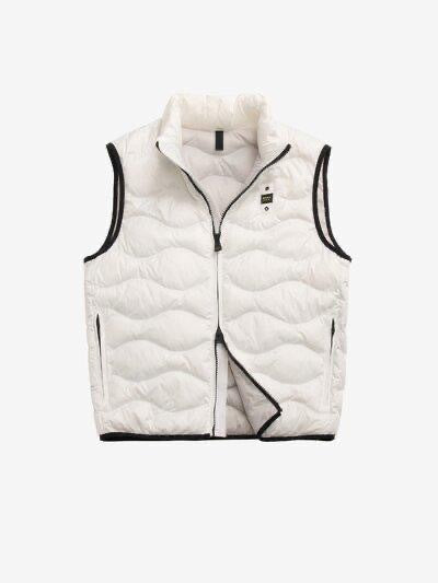 Giubbetto senza maniche con leggero motivo check, imbottitura sostenibile impunturata ad onde e fodera in contrasto colore