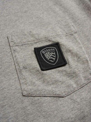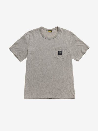 Maglietta in tessuto fiammato melange comodo e leggero. Taschina con etichetta applicata sul petto.
