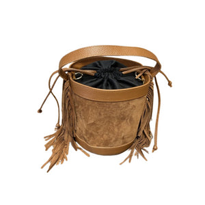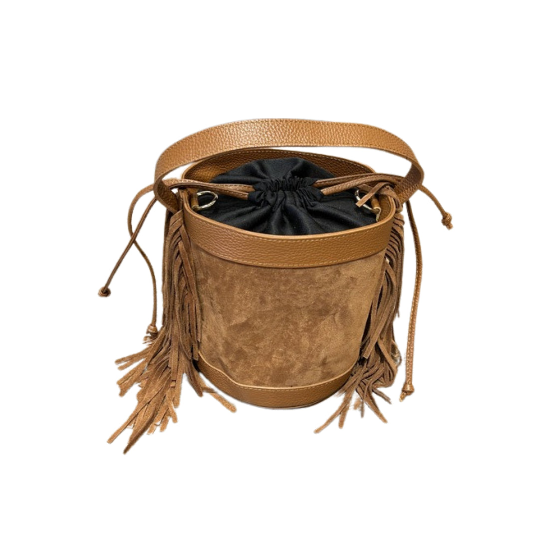 Borsa Secchiello Con Frange e Chiusura a Coulisse