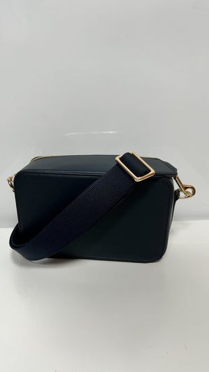 Tracolla TOMMY HILFIGER a tela blu. Chiusura con zip a doppio cursore è tracolla regolabile e rimovibile.