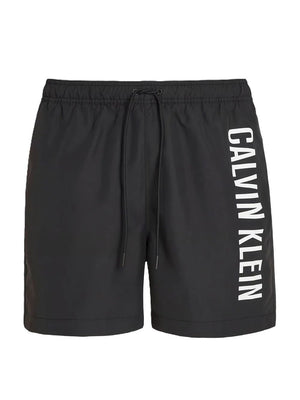 Tessuto ad asciugatura rapida, lunghezza media, vita elastica con coulisse, tasche a filetto, tasca posteriore, fodera in rete, logo Calvin Klein bold stampato sulla gamba