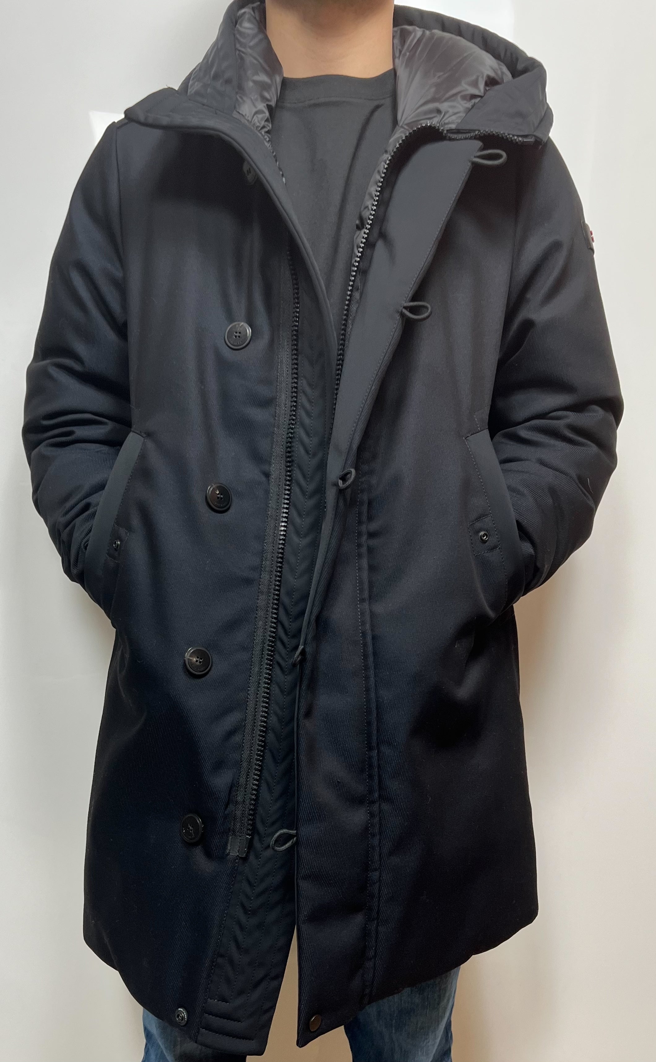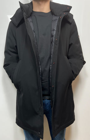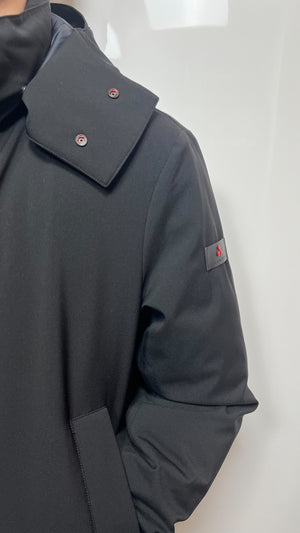 Parka PEUTEREY nera in nylon stretch e jersey. Idrorepellente con Trattamento Teflon EcoElite