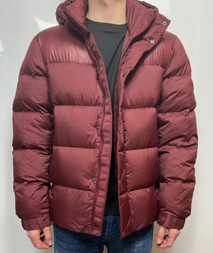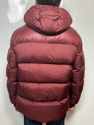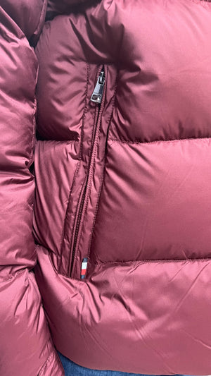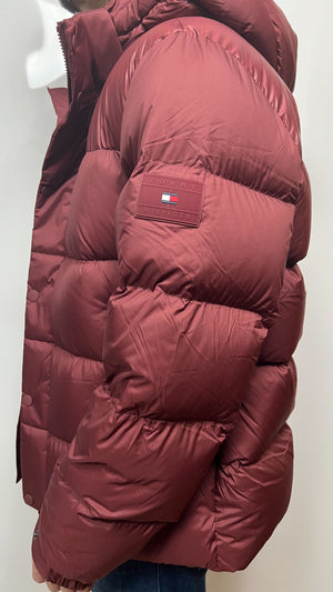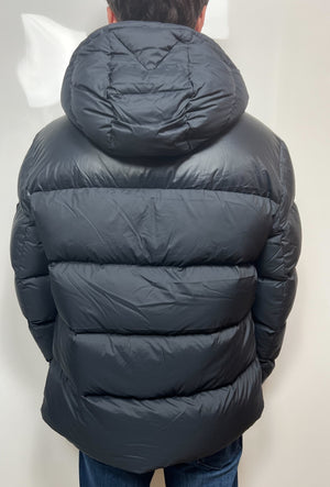 Giacca TOMMY HILFIGER blu idropellente con imbottitura in piuma. Cappuccio rimovibile con tiralacci.
