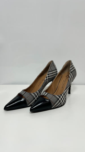 Decolletè DIVINE FOLLIE nero check punta in vernice. Punta in pelle con cut out. Tacco 9cm.