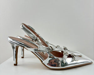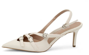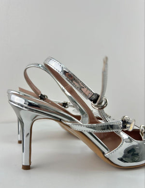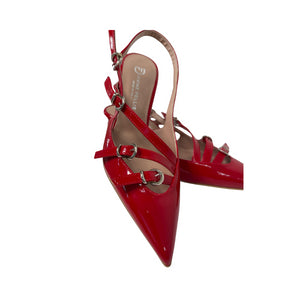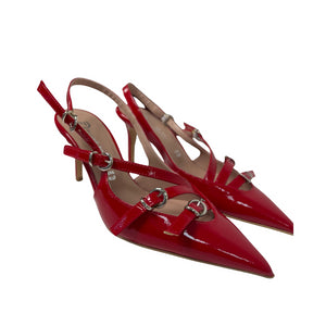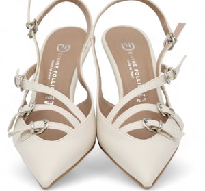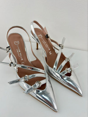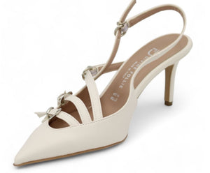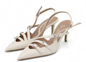 Décolleté in pelle Divine Follie. Modello a punta con tacco a spillo. Dettaglio di multi laccetti con fibbie argento. Cinturino che avvolge il tallone regolabile.
