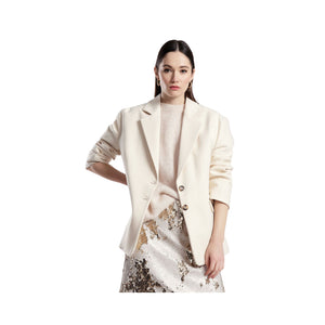 Perfetto per aggiungere stile al tuo guardaroba di tutti i giorni, questo blazer regular fit presenta rever classico, due bottoni frontali e pratiche tasche a patta. Un capospalla versatile, pensato per chi cerca un tocco originale senza rinunciare alla comodità, ideale per outfit femminili e curati in ogni dettaglio.