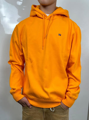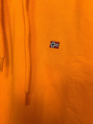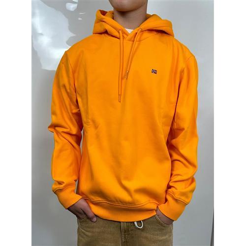 Felpa NAPAPIJRI nera maniche lunghe con cappuccio. Applicazione con logo. Cotone organico.