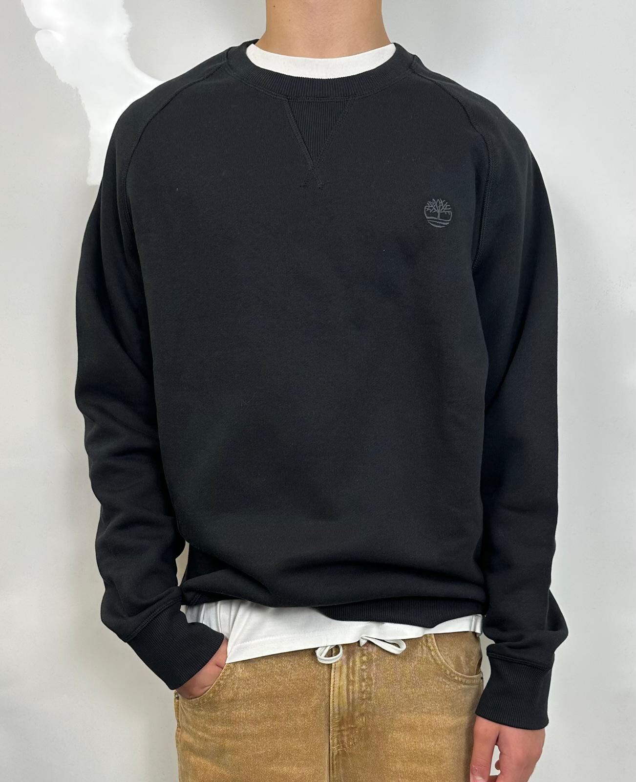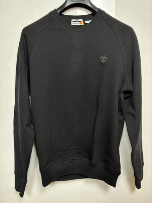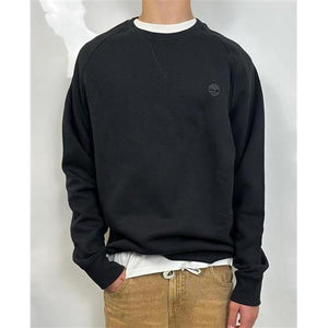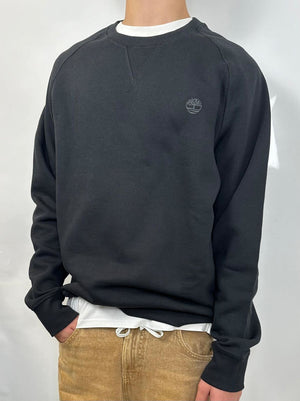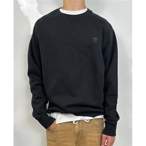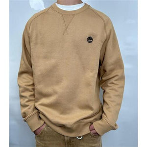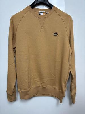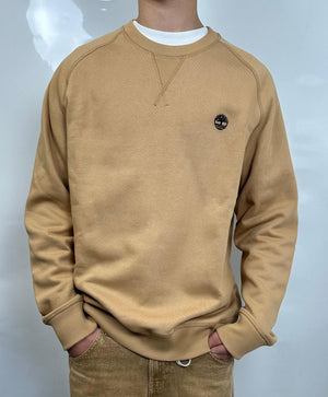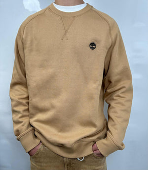 Felpa cammello Timberland a girocollo a maniche lunghe. Regular fit, logo picoolo ricamato, cotone organico.