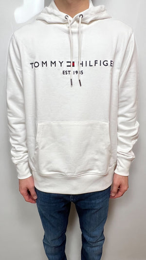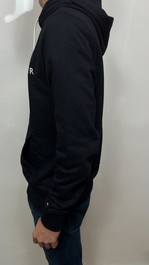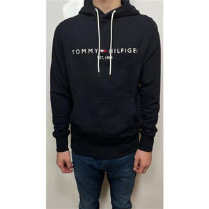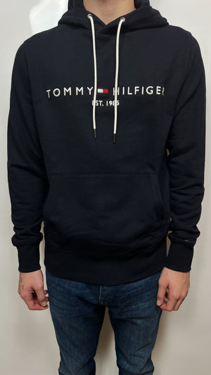 Felpa blu TOMMY HILFIGER con il maxi logo presenta un cappuccio regolabile con lacci e tasche a marsupio. 100% cotone.