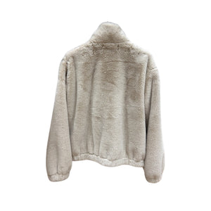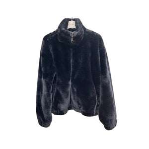 Giacca in eco-pelliccia dal design morbido e avvolgente, caratterizzata da una texture soffice che offre comfort e calore durante le giornate più fredde. Il modello presenta un pratico collo alto che protegge dal vento, maniche dalla vestibilità rilassata e una chiusura frontale con zip che assicura funzionalità e comodità. Il taglio leggermente arrotondato sul fondo contribuisce a dare un effetto voluminoso e moderno, rendendo questo capo ideale per chi desidera un look elegante ma allo stesso tempo casual e facile da abbinare.