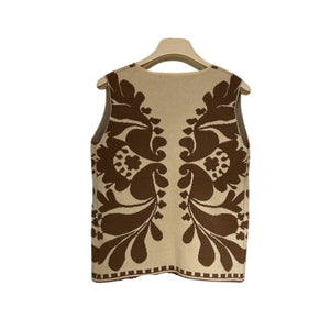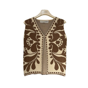 Perfetto per completare i tuoi look con un tocco originale, questo gilet in maglia fantasia presenta una linea aperta e una pratica chiusura con gancetto