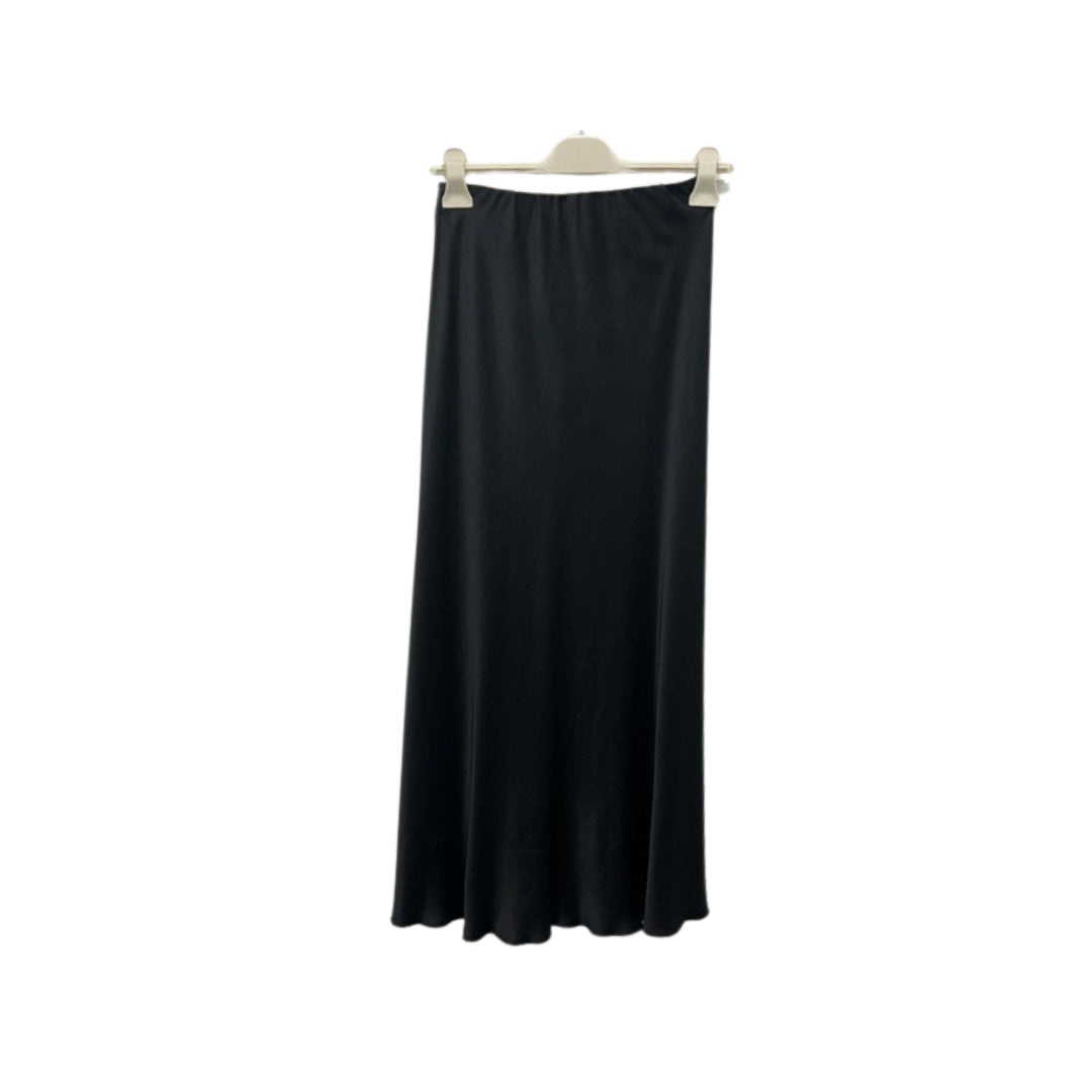 Elegante e versatile, questa gonna lunga è realizzata in viscosa, un tessuto leggero e morbido che dona un effetto fluido e setoso al capo. Il design minimalista è valorizzato dall’assenza di chiusure, per una vestibilità semplice e confortevole che si adatta naturalmente alla silhouette. Il taglio dritto leggermente svasato sul fondo aggiunge movimento e raffinatezza, rendendola perfetta sia per look casual che più eleganti, abbinata a top aderenti o camicie oversize.
