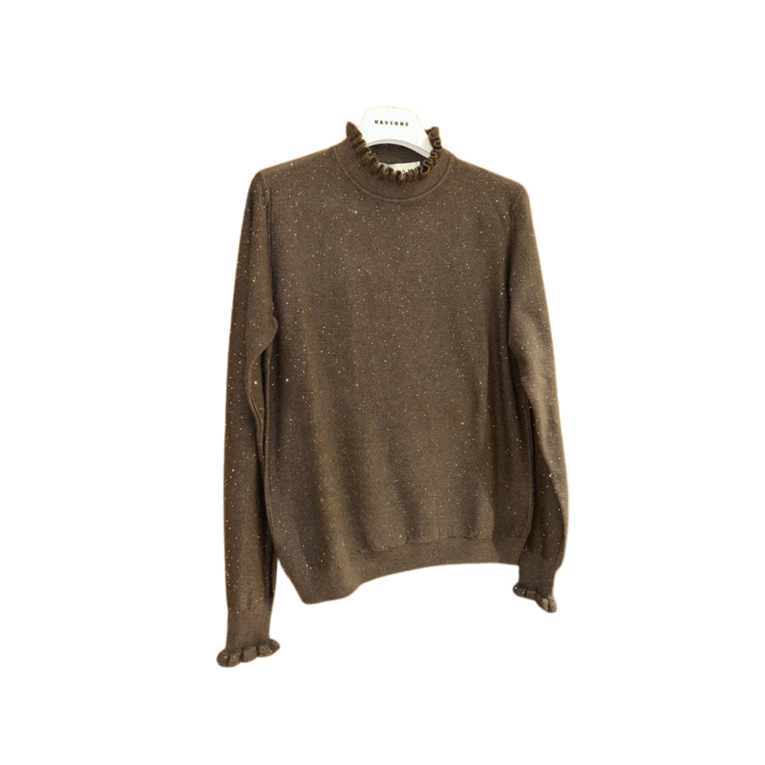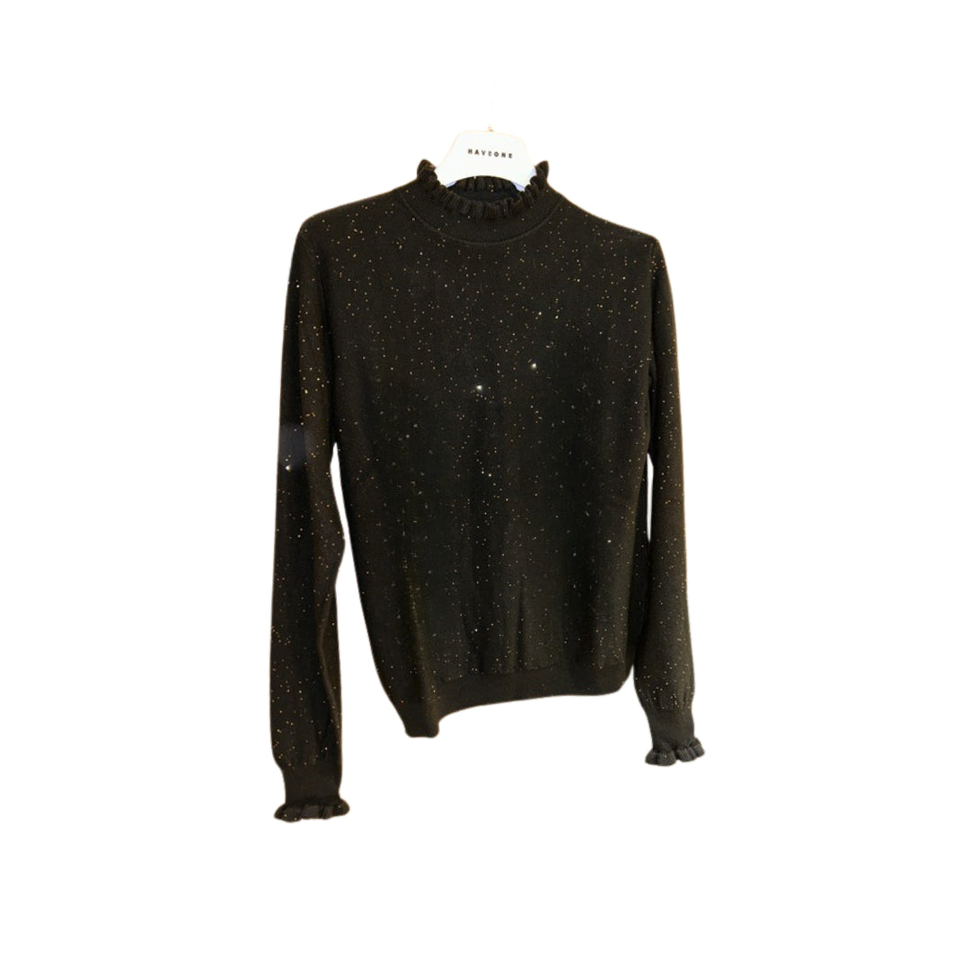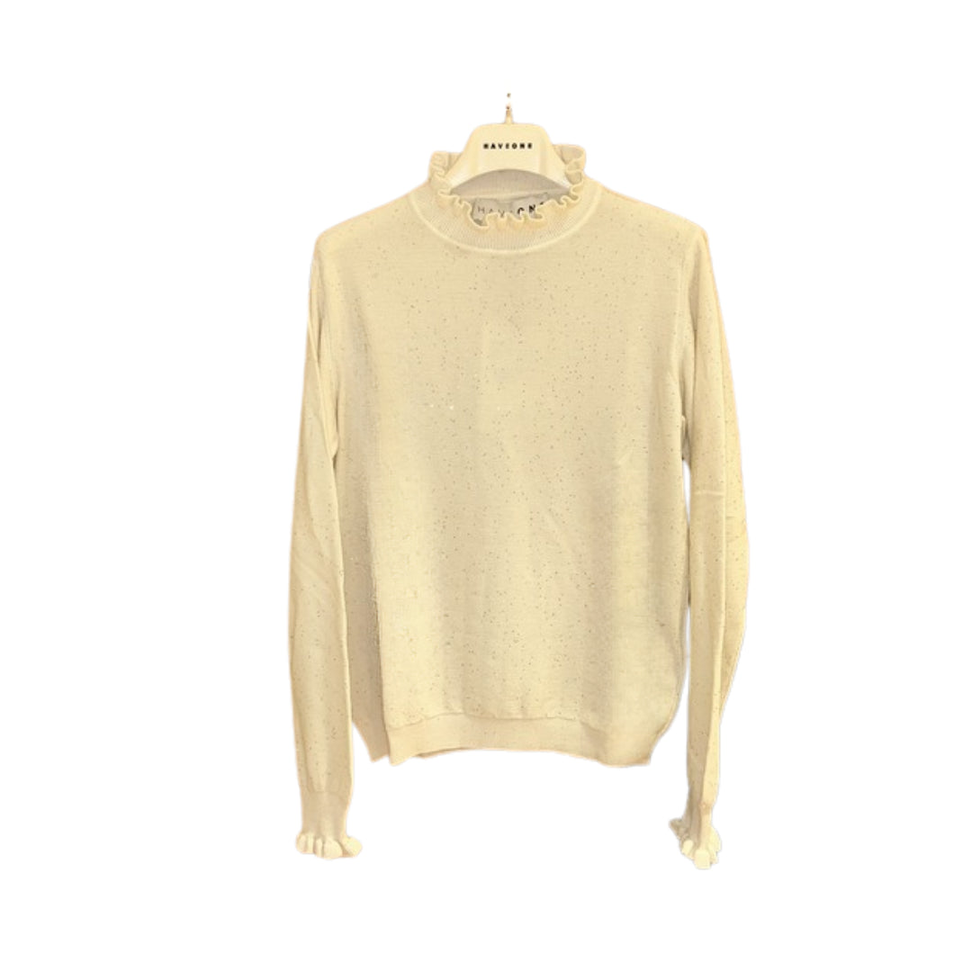HaveOne Maglia in Viscosa con Colletto, Rouches e Micro Paillettes MNC-P061