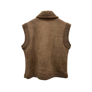 Caldo, avvolgente e dallo stile essenziale: questo gilet over in eco montone è il capo ideale per affrontare la stagione fredda con comfort e personalità. La linea ampia lo rende facile da sovrapporre a maglioni o camicie, mentre la chiusura semplice a un bottone ne esalta l'estetica pulita e raffinata. Privo di tasche, si distingue per il suo design minimalista e moderno, perfetto per completare outfit invernali con un tocco cozy e contemporaneo.