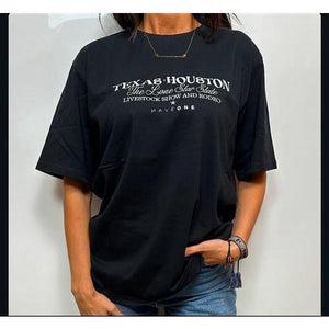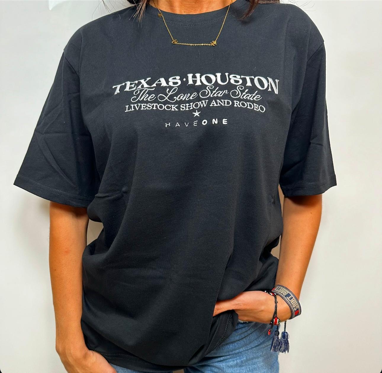 T-shirt HAVEONE bianca, con scritta Texas Houston, taglia unica è veste over. 100% cotone.