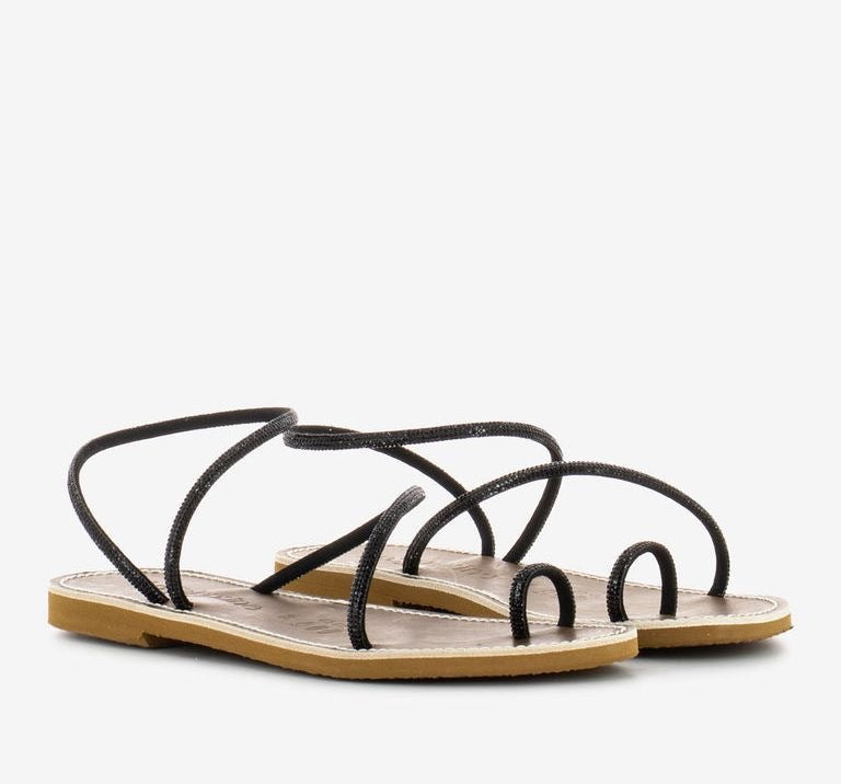 Fasce sottili tubolari in pelle ricoperte di strass.