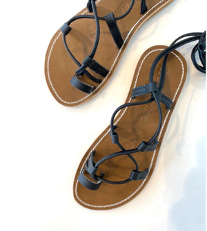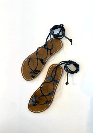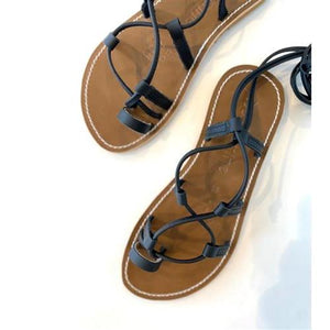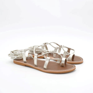 Sandalo infradito Le Salentine, tomaia in pelle, pianta in pelle e fondo in gomma, lacci sottili da girare attorno alla caviglia