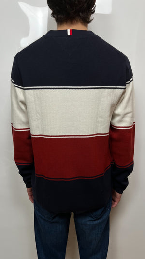 Pullover multicolor TOMMY HILFIGER a girocollo con patch logo Hilfiger monotipo sul fondo. 100% cotone.