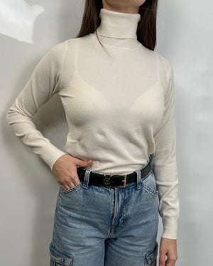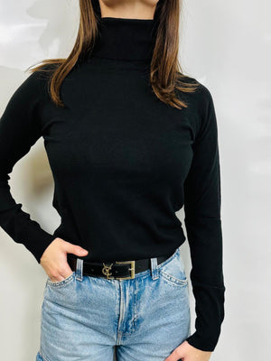 Maglia VICOLO nera a dolcevita in misto viscosa, maniche lunghe, bordi a costine.