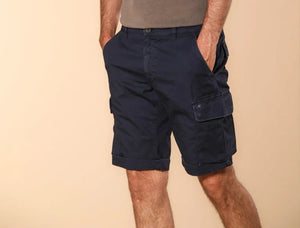 Bermuda uomo con tasche laterali, sulle gambe e sul retro. Chiusura con bottone. Il capo ideale per sfoggiare un outfit fresco