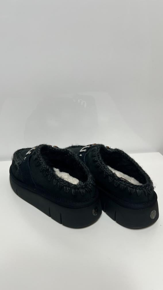 Il bounce clog MOU grigio con logo metallizzato è sapientemente realizzato a mano in vera pelle di montone double-face e dettagli all'uncinetto, distintivi di mou. Il plantare imbottito in pelle e la suola leggera in EVA & gomma rendono questo modello incredibilmente comodo da indossare.