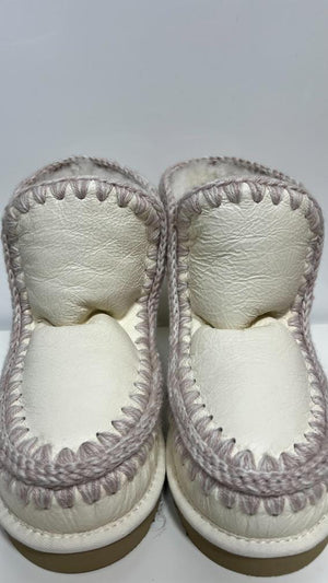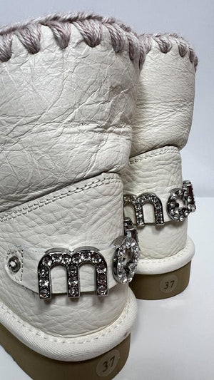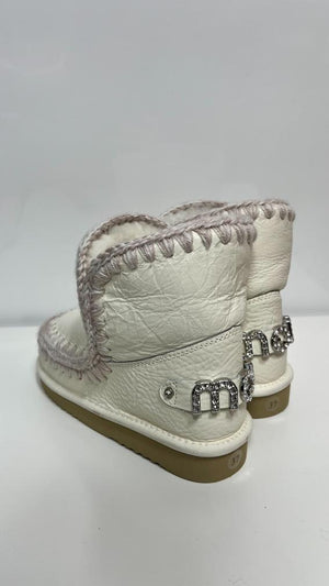 L'eskimo 18 con logo in strass è sapientemente realizzato a mano, in vera pelle di montone double-face estremamente calda, cuciture in lana all'uncinetto, tallone rinforzato e una suola esterna in EVA & gomma. Incredibilmente confortevole e resistente. Altezza 18cm. Regular fit.