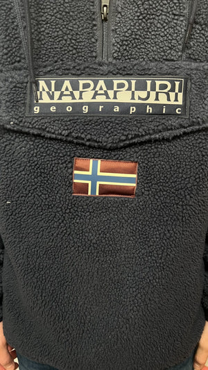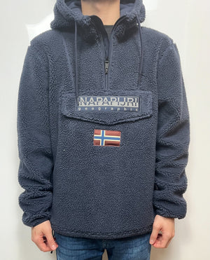 Felpa NAPAPIJRI blu in pile con chiusura a zip, cappuccio e orlo regolabili.