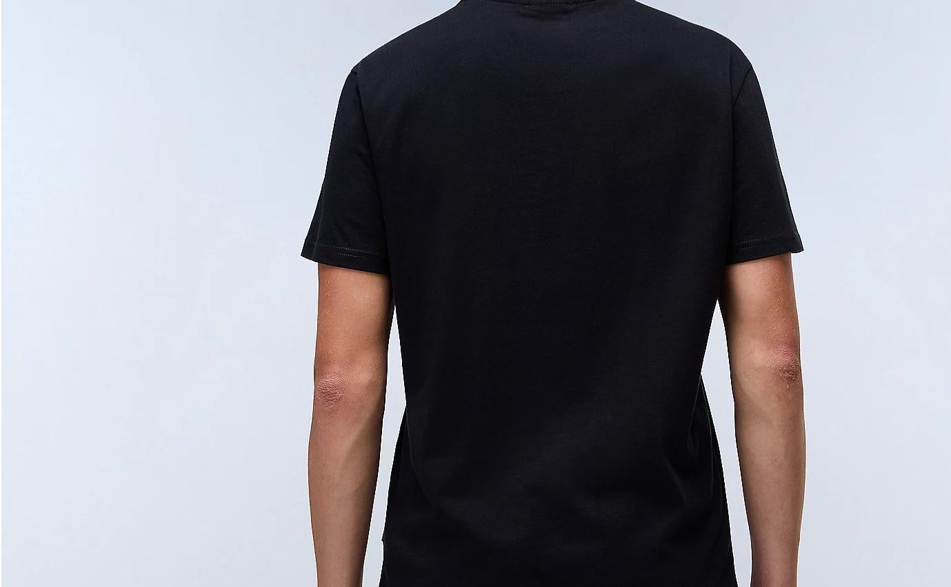 La t-shirt a maniche corte abbina un’estetica semplice a un morbido e traspirante tessuto in 100% cotone. Indossata come strato sotto una felpa oppure da sola, è la base perfetta di qualsiasi outfit.