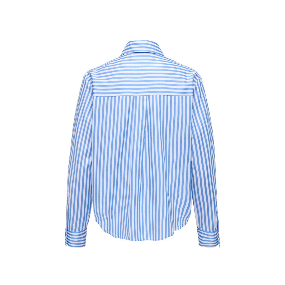 Camicia dal design classico con collo camicia e maniche lunghe, dotata di polsini con bottone e chiusura frontale con bottoni. Vestibilità regular fit, con dettaglio più lungo sul retro per un tocco moderno e confortevole.