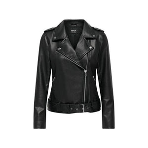 Chiodo biker Only nero, collo Biker, maniche lunghe, chiusura asimmetrica con zip.
