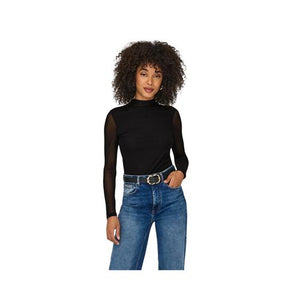 Rinnova il tuo look quotidiano con un tocco di eleganza grazie a questo top femminile dal design essenziale ma d’impatto. Realizzato in tessuto leggero, presenta una vestibilità aderente che valorizza la silhouette, un raffinato collo alto e maniche lunghe per uno stile sofisticato. I dettagli in mesh aggiungono un tocco moderno e sensuale, mentre la stampa pigmentata garantisce un effetto delicato e naturale sul tessuto.