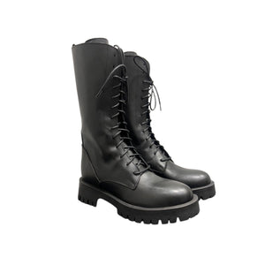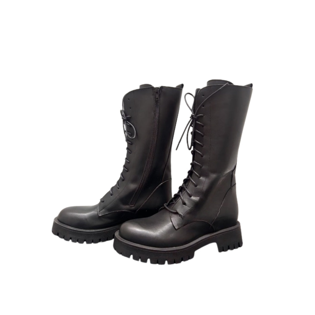 Questo anfibio Ovye è un perfetto equilibrio tra stile e funzionalità. Realizzato con materiali di alta qualità, presenta una silhouette alta e avvolgente con chiusura a lacci frontale e comoda cerniera laterale che ne facilita la calzata. La suola carrarmato in gomma offre stabilità e aderenza, mentre il design lineare e moderno aggiunge un tocco grintoso e contemporaneo a qualsiasi outfit. Ideale per look casual o street, ma anche per dare carattere a combinazioni più eleganti, è una calzatura indispensabile per la stagione.