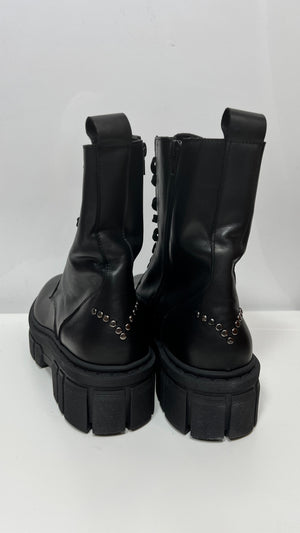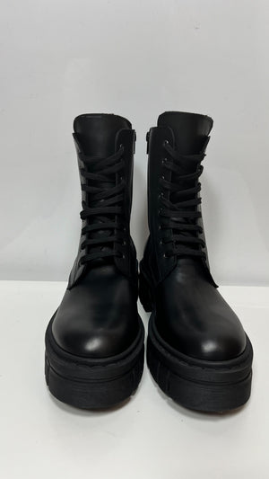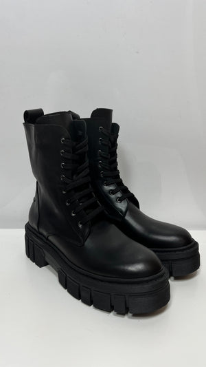 Scarpa OVYE' nera in pelle, cerniera laterale, tacco 5 cm.