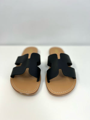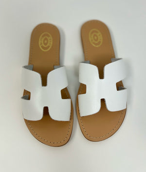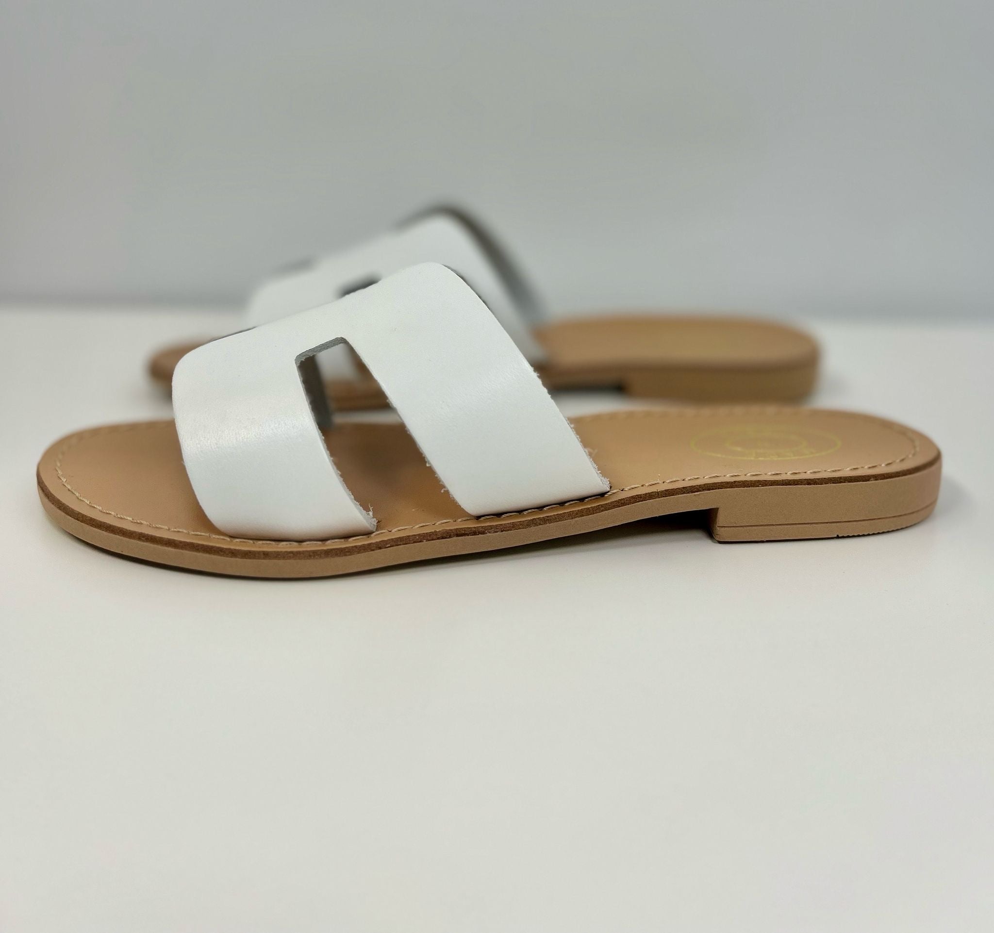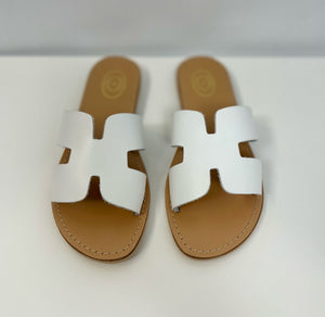 La ciabatta flat della collezione primavera/estate di Ovyé presenta design minimal con cinghia anteriore dal design geometrico e traforato.